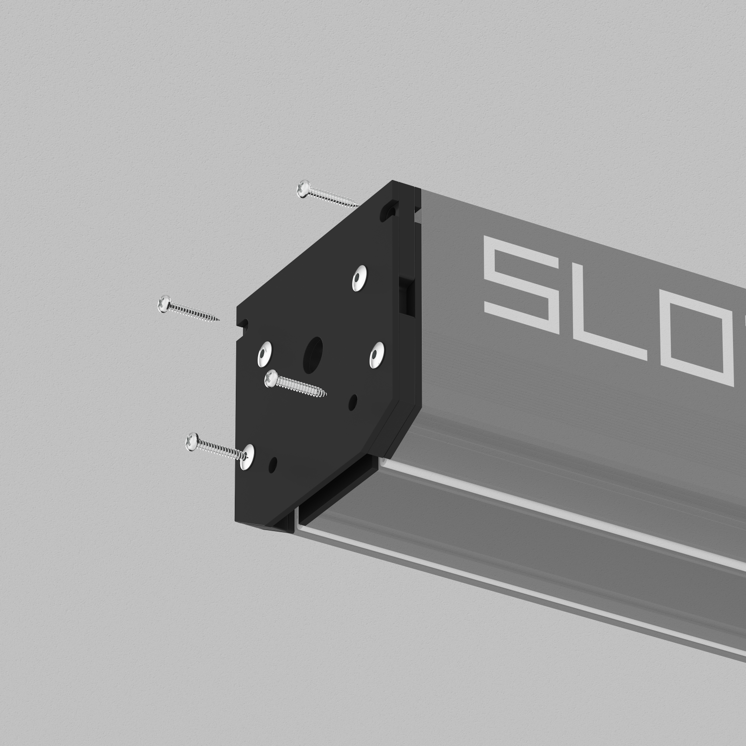 Торцевая заглушка трека SLOTT. Устанавливается на торцах трековой системы. Винты для крепления к профилю в комплекте. Для одной линии трека необходимо приобрести две заглушки.