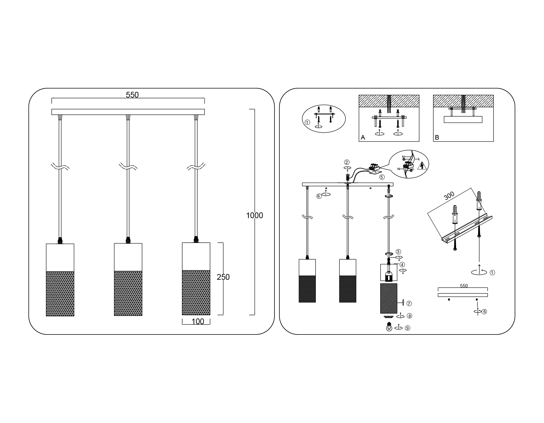 Светильник подвесной TR8501/3 BK черный E27/3 max 60W 550*100*1000 (Ambrella Light, TR8501)