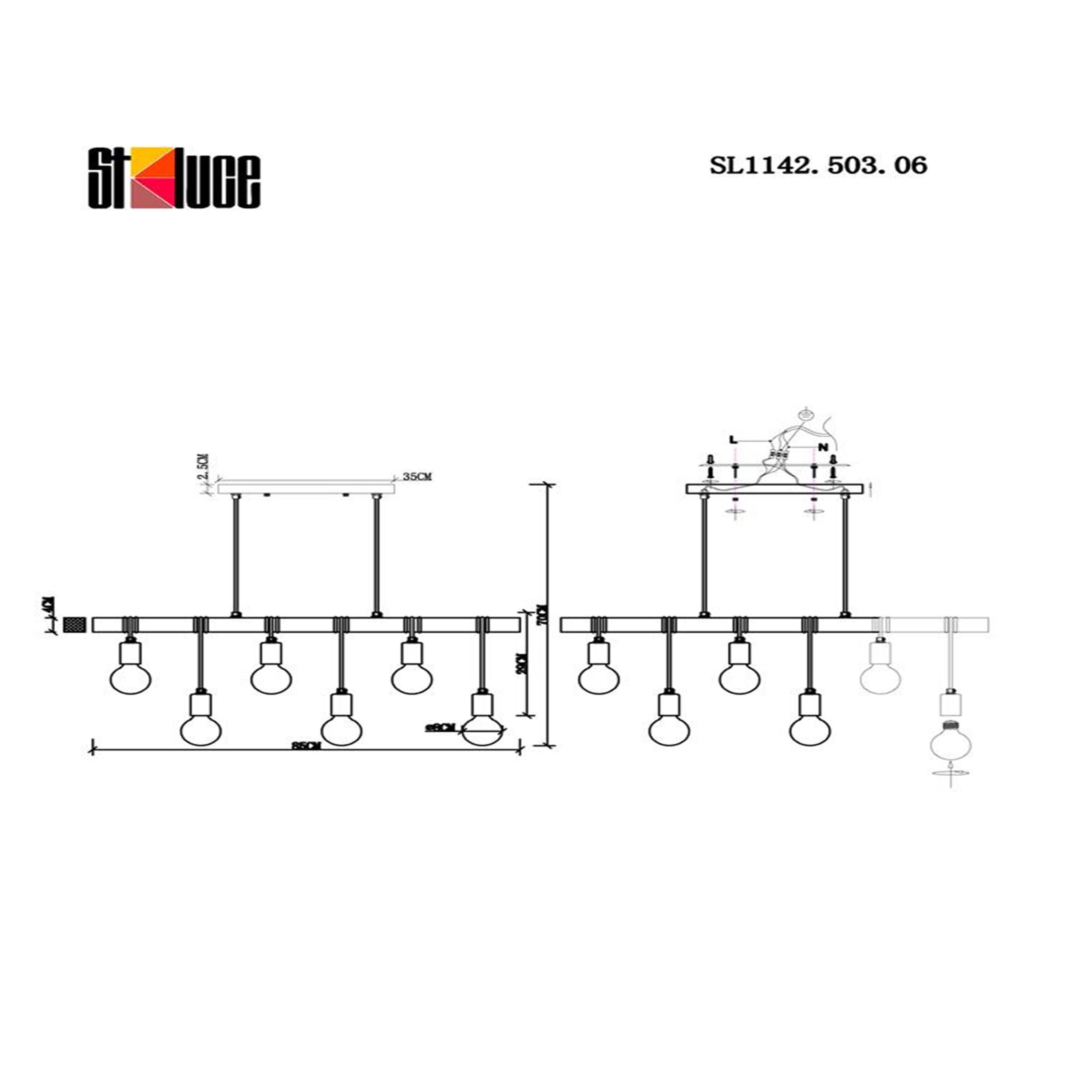 | Альтернативное название | SL1142.503.06 Светильник подвесной Белый, Светлое дерево E27 6*60W BAGETTI |