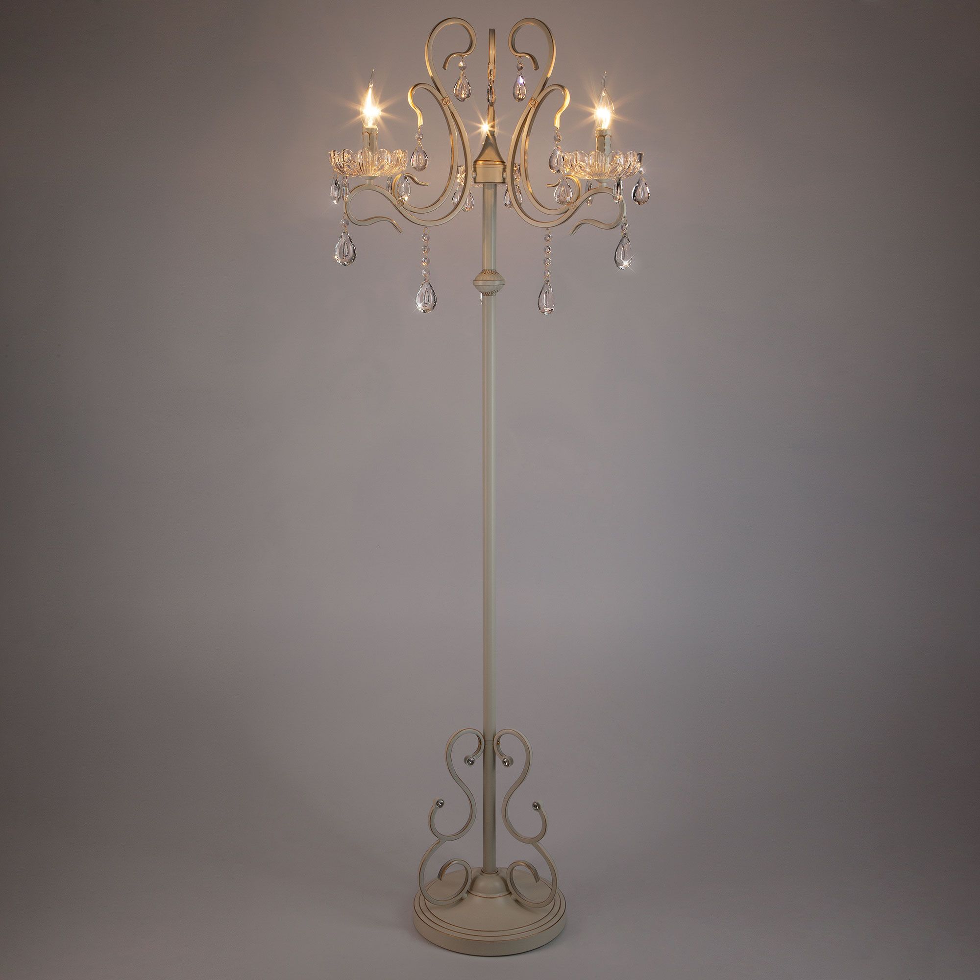 Благодаря рожкам в виде подсвечников, напольный светильник придаст аристократичного стиля в вашем интерьере. Прочный металлический корпус светильника устойчив к механическим воздействиям, а защитное покрытие обеспечивает надежную электроизоляцию и презентабельный внешний вид.